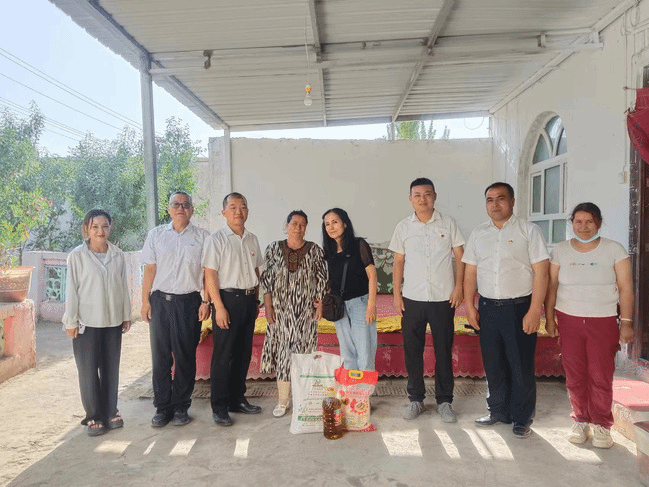 在村民图尔荪古丽·恰娃家,团结村工作队队长岳敦福紧紧握住她的手说:“古尔邦节到了,我们来看看你们,希望这些米面油能为你们的节日增添一些温暖。”图尔荪古丽·恰娃激动地说:“感谢团结村工作队一直以来对我们的关心和帮助,让我们感受到了家的温暖。”