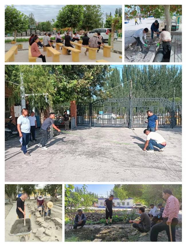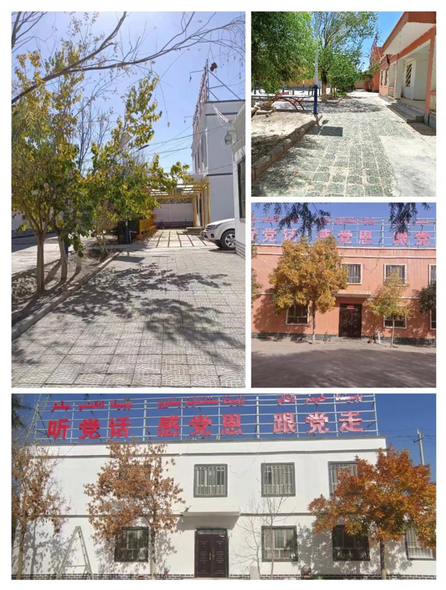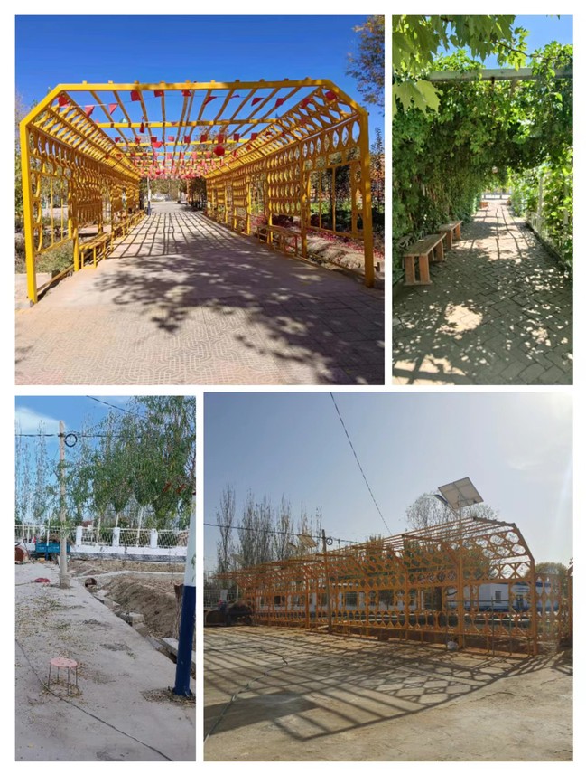 村委会大院是全村发展的缩微图和晴雨表,随着国家乡村振兴战略的持续实施,村容村貌持续发生变化,而村委会大院的公共区域和办公区域也呈现出后续建设跟进不足的问题。为了解决这些问题,365英国上市公司官网驻莎车县孜热甫夏提塔吉克民族乡团结村工作队和英迈里村工作队积极商议,整体谋划、实施“石榴大院”美化工程。在充分听取村“两委”干部、村民意见建议的基础上,工作队于2023年6月至10月实施了美化亮化大门、搭建葡萄长廊、改善办公条件、修缮旗杆及主席台、粉刷工作队驻地、粉刷围墙及警务室并修建30米葡萄绿廊等“七大工程”,将“石榴大院”改造成白墙灰瓦的徽派风格,广受当地干部群众的好评。