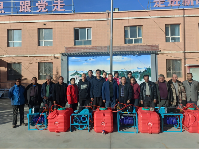 仪式上,比拉力江•阿不力孜宣布捐赠决定并介绍采购、特点等情况。他强调,采购农用电动打药机就是立足于驻村四项任务,倾心为民服务,提升防病虫害工作效率,目的就是助力村民增产增收。他希望村民能够认真学习操作技术,用心爱护并有效使用这批设备,确保打药设备持续为民增产增收造福。随后,驻村工作队将购置的农用电动打药机郑重地交给了村民代表。村委会副主任艾麦尔·巴拉提现场开展操作培训。