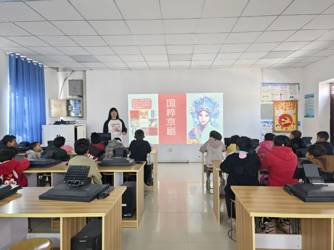 京剧,这门璀璨的艺术形式,融合了中国传统戏曲的精华,汇聚了中国五千年的历史文化,其独特的魅力与深邃的内涵,值得探寻与传承。小课堂中,工作队为孩子们讲解了京剧的历史背景、表演技巧和流派特点等知识,让大家能够深入了解京剧文化的内涵和魅力。通过欣赏经典京剧片段,让同学们感受到京剧的独特韵味和艺术价值。大家还一起聆听歌曲《唱脸谱》,认识脸谱颜色的运用,深入了解京剧艺术独特的表演形式和艺术特点。此外,京剧所蕴含的爱国情怀、崇德向善、孝悌忠信、礼义廉耻、扶危济困等荣辱观念,也在潜移默化中影响孩子们的思想观念,培养他们的道德品质和人文素养。大家共同完成了脸谱的描绘,在画笔的舞动中,孩子们领略到京剧脸谱的艺术之美,学会如何运用色彩来描绘出精美的脸谱图案,感受艺术的创造力和想象力。