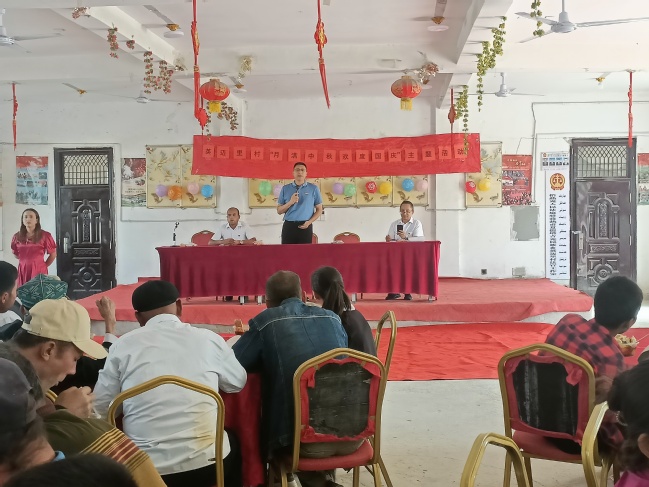 在活动中,工作队副队长蔡永亮向村民们送去了中秋国庆“双节”的美好祝福,他希望大家铸牢中华民族共同体意识,模范遵纪守法,不断增强内生动力,利用党的惠民政策持续增收致富,建设美好家园。活动中还表彰了秋收期间坚持活跃在各个舞台的文艺骨干。
