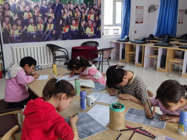 为保证比赛的效果,在驻村工作队参加实习的2名中国语言文学学院维吾尔语专业的实习生利用周末时间为孩子们进行清明古诗词素材收集、词义讲解和展示设计的指导。校党委常委、副校长、驻莎车县“访惠聚”工作队总领队、亚喀艾日克村党总支书记、第一书记帕力旦·吐尔逊也来到现场,为孩子们纠正字词发音、书写笔画顺序,并进行了课业辅导,鼓励孩子们在古诗词的熏陶中感受中华传统文化的魅力。