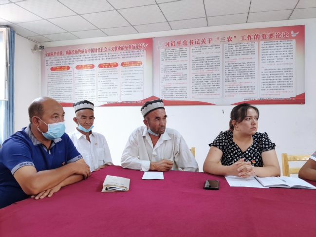 阿不拉·玉素甫带领党员学习习近平总书记考察新疆重要讲话精神