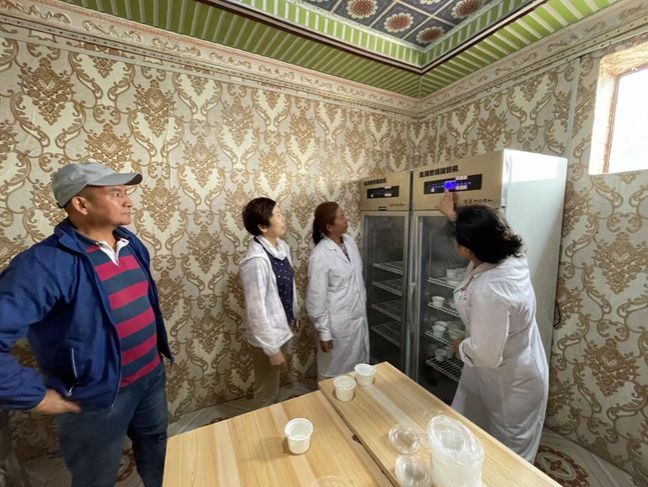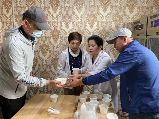 孙秀玲一行参观了吾舒尔•哈孜家的养殖棚圈和酸奶加工区,一起品尝了新制作的酸奶。大家对于酸甜细腻,香醇可口的老酸奶赞不绝口。