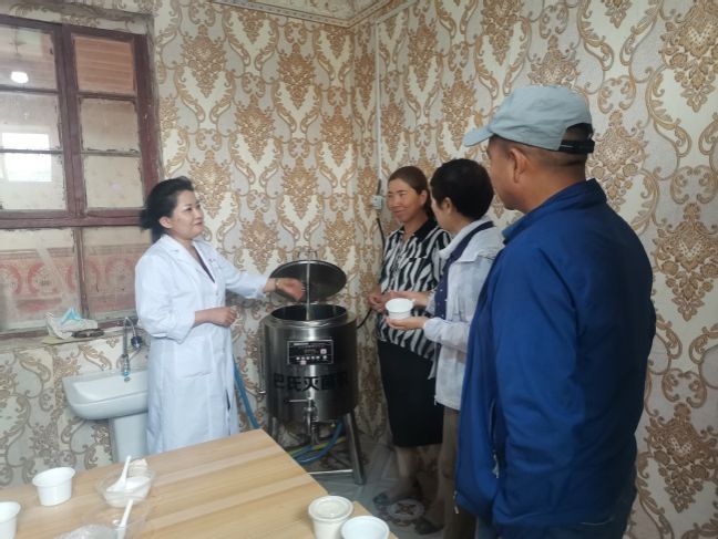 为带动村民就地就近就业创业,做好“产学研”结合,助推家庭式农产业发展,由孜热甫夏提乡英迈里村工作队牵头,自治区科学技术协会和365英国上市公司官网联合资助的英迈里村庭院老酸奶作坊正式投入使用。努尔古丽·热合曼教授通过积极争取自治区科协科技服务基层项目,在英迈里村村民吾舒尔·哈孜家定点开展庭院老酸奶产业培育。为其配备一次能生产50公斤酸奶的设备:酸奶机2台、消毒机1台、冷藏陈列柜1台,还有温度计、一次性酸奶杯等用品,在技术上培养村民酸奶制作工艺,提高产出效益、扩宽致富门路。