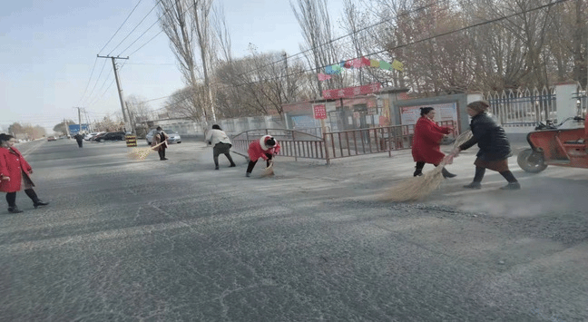 3月5日,喀勒提拉村的女志愿者们打扫了村巴扎路口、村小学、村委会等区域的卫生,以实际行动带动各小队农户积极参与庭院卫生整治,改善人居环境。