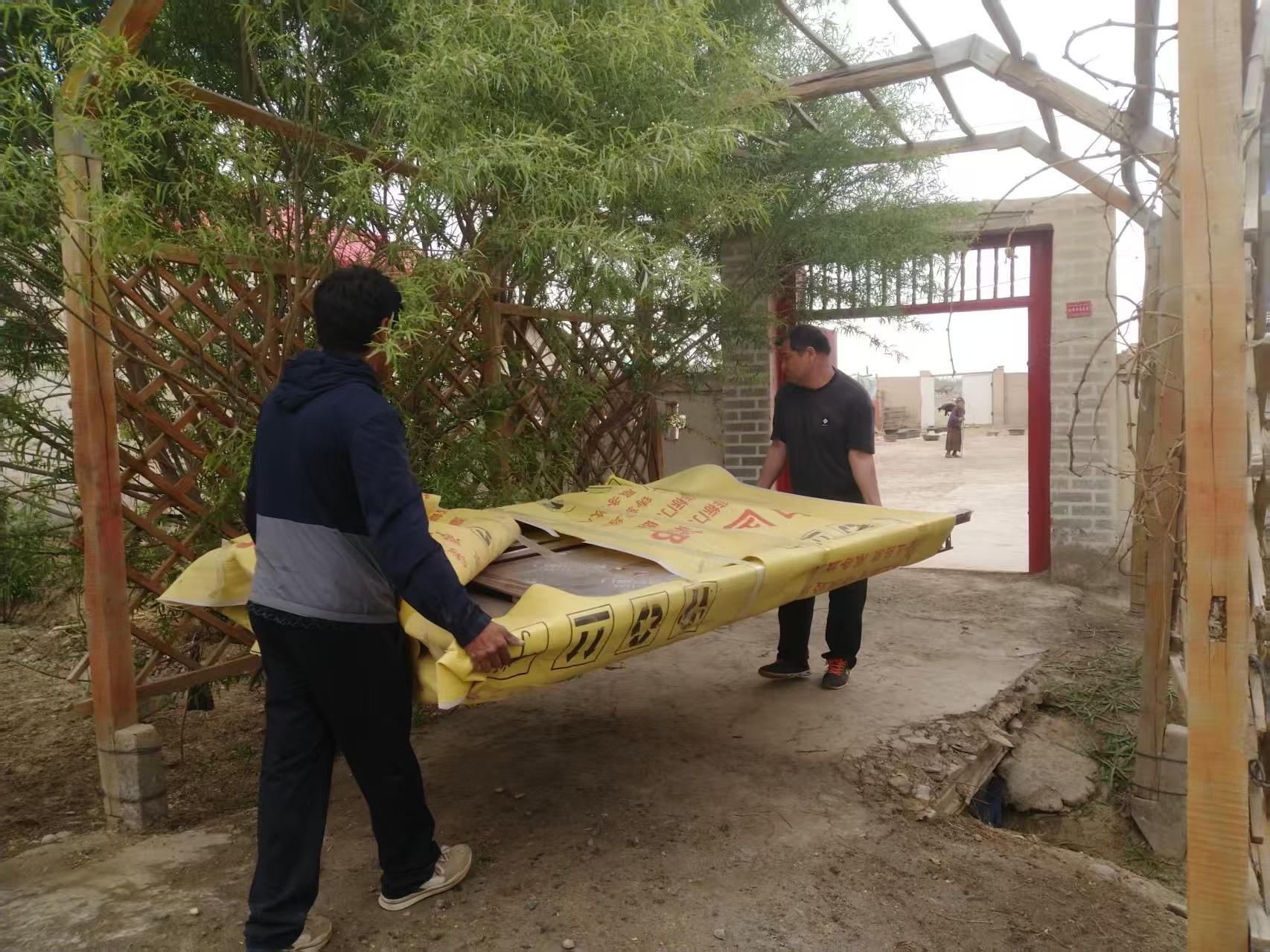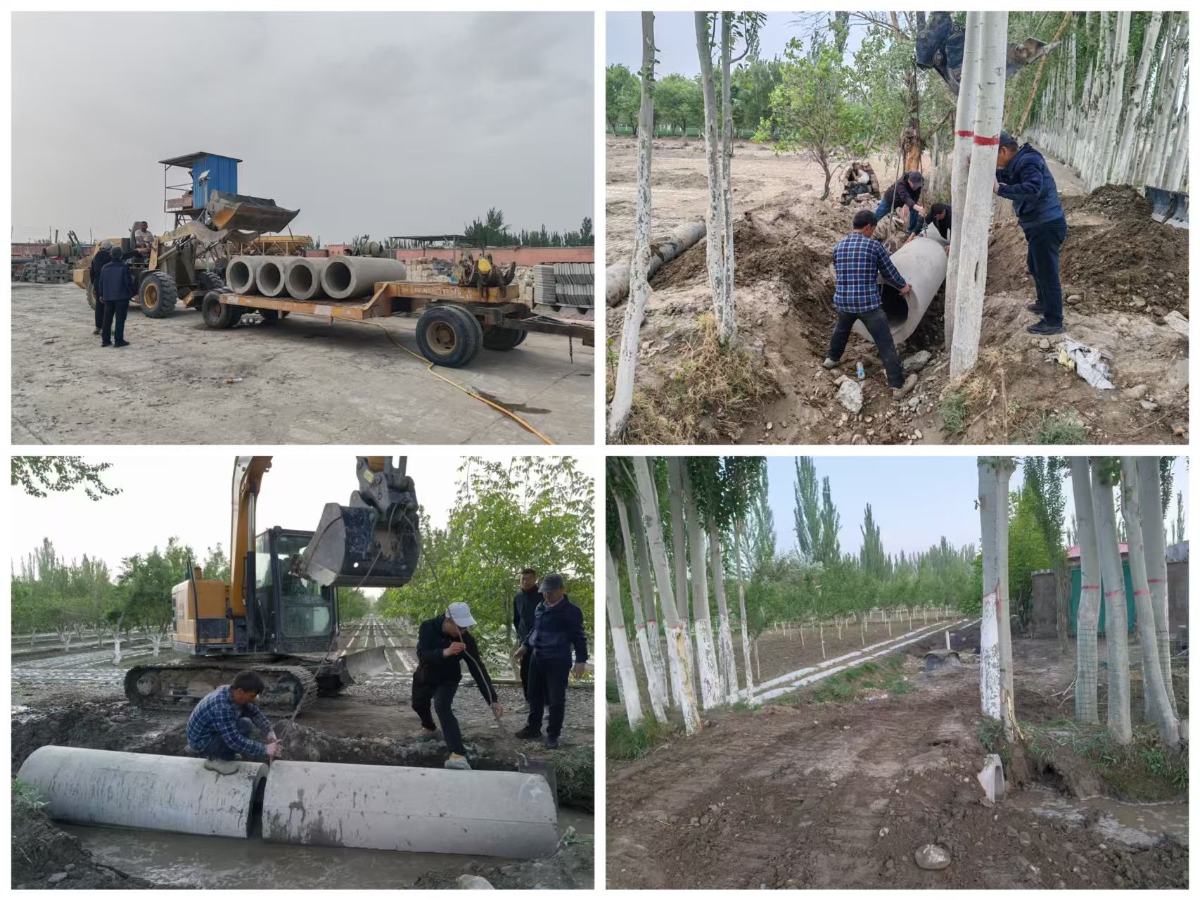 孜热甫夏提塔吉克族乡团结(4)村工作队为村委会维修打印机和修缮安检门,在汛期来临前加固修缮防洪堤坝,走访慰问种树和在戈壁园区劳作的村民。