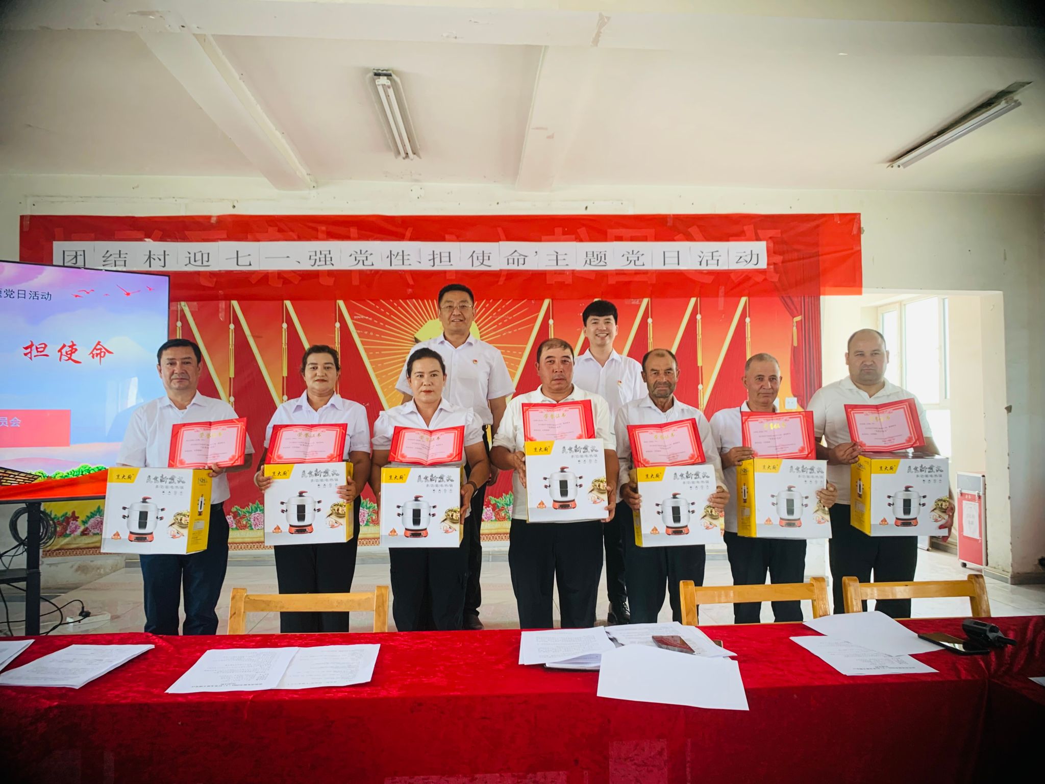 孜热甫夏提塔吉克族乡团结(4)村举行新党员入党仪式,新党员庄严宣誓,老党员重温誓词,唤醒入党初心。并表彰优秀党员,给党员发放政治生日贺卡,组织观看爱国电影,走访慰问老党员和困难党员。