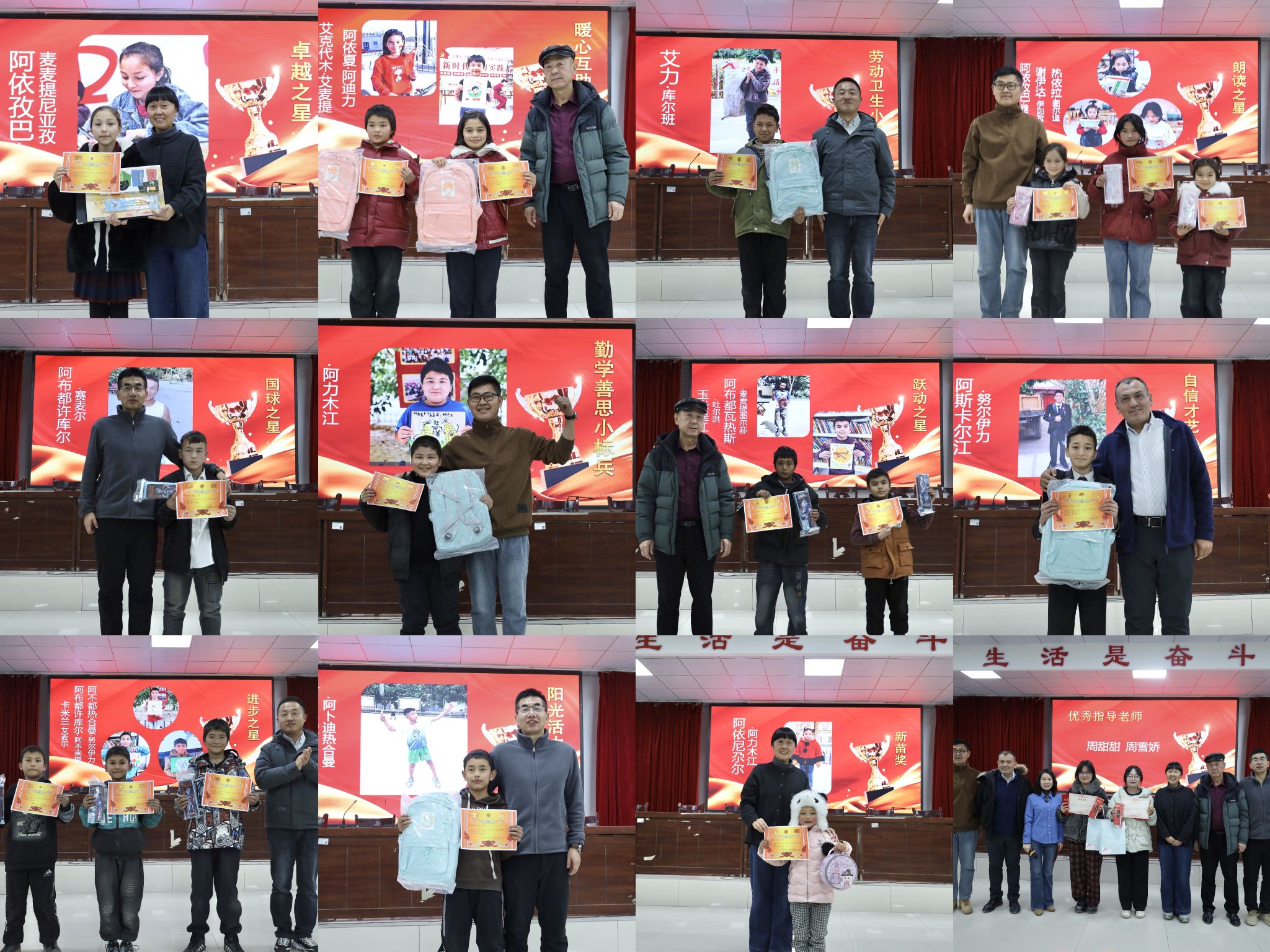 亚喀艾日克乡亚喀艾日克(8)村工作队开展环保主题小课堂,教学生制作色彩缤纷的挂饰风铃,“立冬·雪花剪影”与“小雪·粘土画”节气手工活动教学生学习剪纸技艺。开展户外趣味运动会,组织“乒乓球接力运送”“协作传递沙包”等集体比赛项目。组织学生携手创作“科技强国”主题十米画卷,组织观看国家公祭日直播仪式,激发爱国情怀和民族自豪感。举办“星光闪耀、成长绽放”小课堂年终表彰大会,激励学生德智体美劳全面发展。