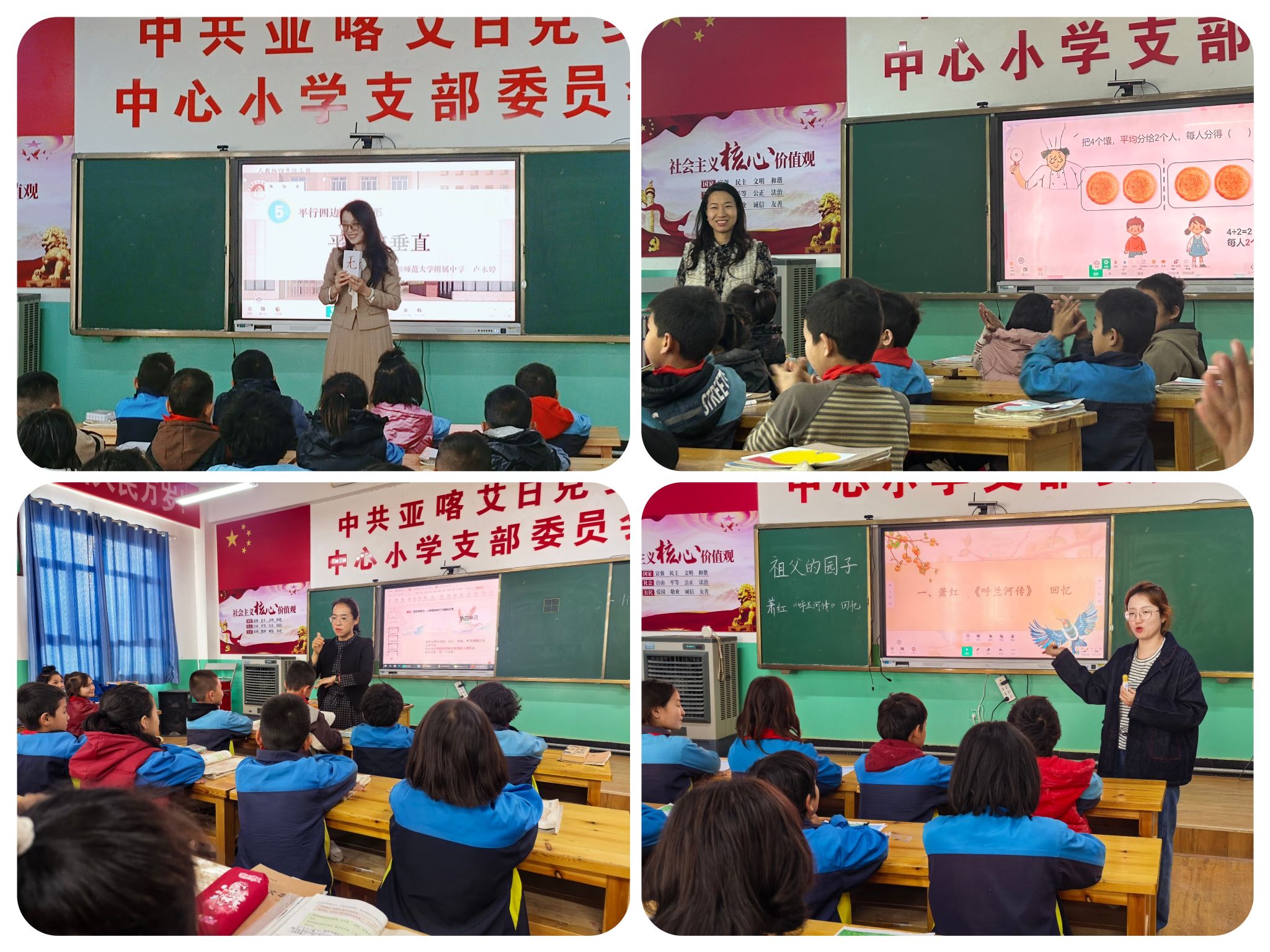 坚持“送教”与“育师”并重,构建多层次师资提升体系。9月,学校选派7名研支团成员和19名本科实习生到亚乡中心小学开展支教,不仅承担语文、数学、英语、道德与法治等基础课程教学,还参与课后服务及学生日常管理工作,累计授课超500课时,有效填补了乡村学校特色教育资源空白,实现了从“输血”到“造血”的深度赋能。