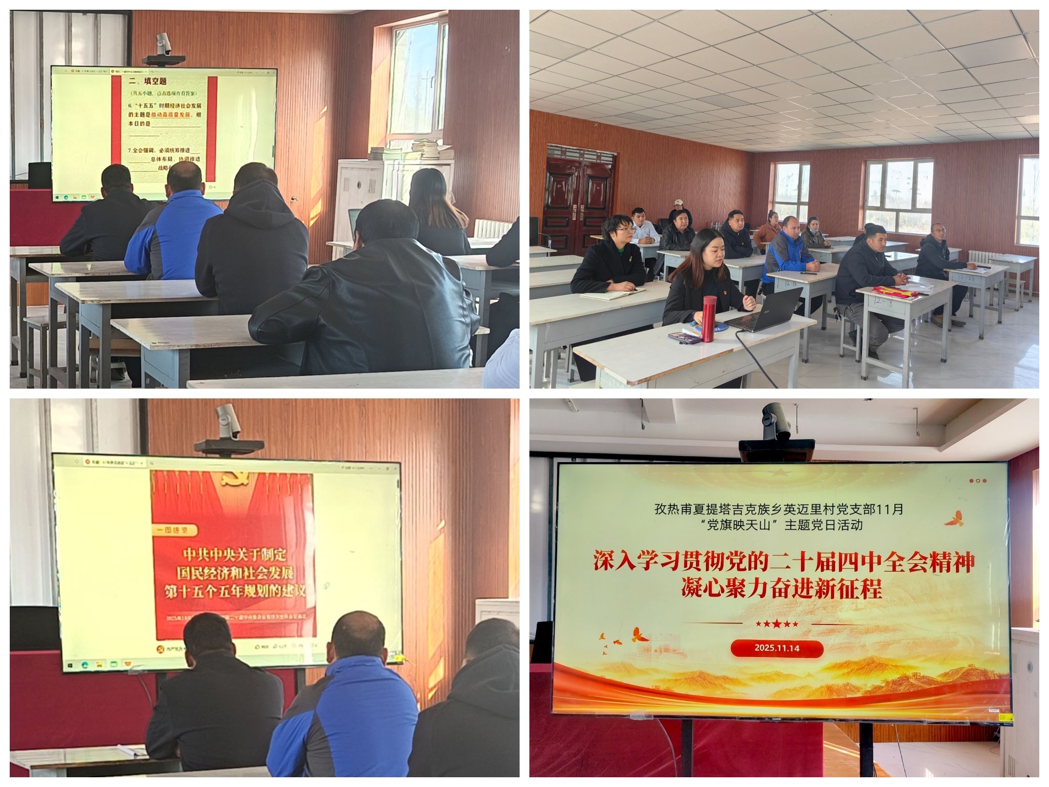 亚喀艾日克乡阔什吐格曼(6)村组织党员学习《中共中央关于制定国民经济和社会发展第十五个五年规划的建议》,重温入党誓词。开展党的二十届四中全会精神知识竞赛,党员们积极参加,沉着应答,推动党的创新理论深入人心。