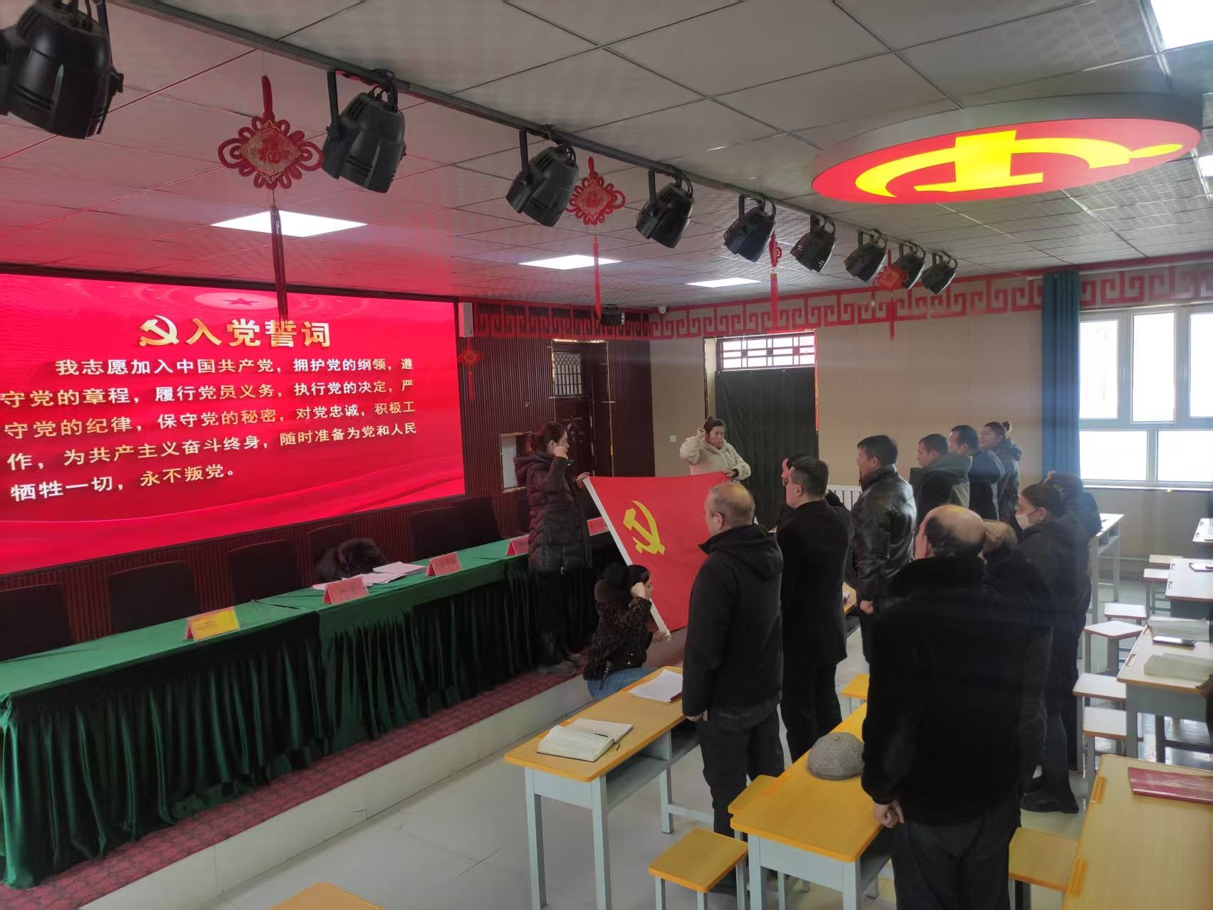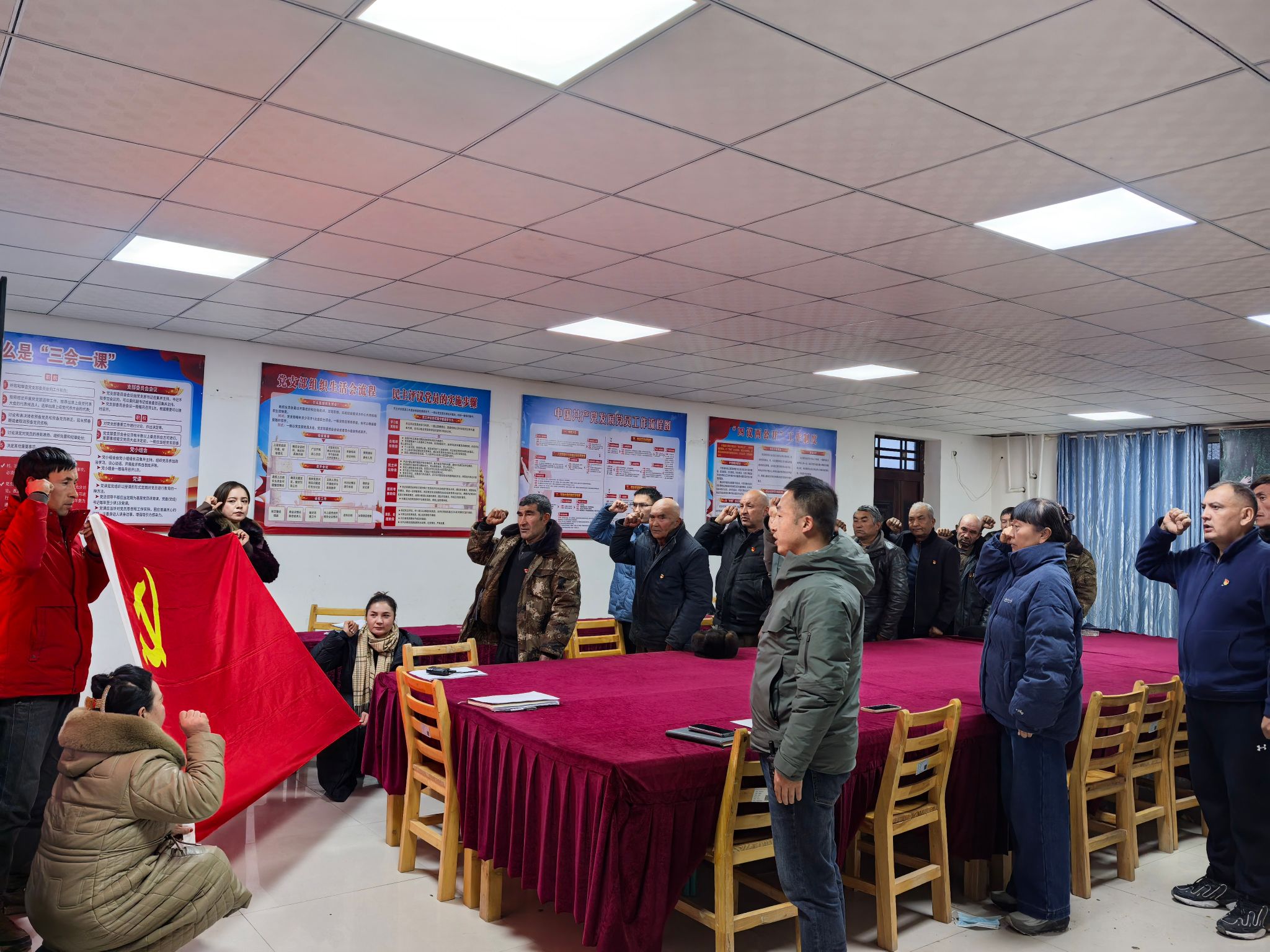 亚喀艾日克乡亚喀艾日克(8)村工作队党支部联合村党支部组织党员学习中央经济工作会议精神,重温入党誓词,观看爱国主义电影《长津湖》,党员代表结合学习内容和自身工作实际分享心得体会。